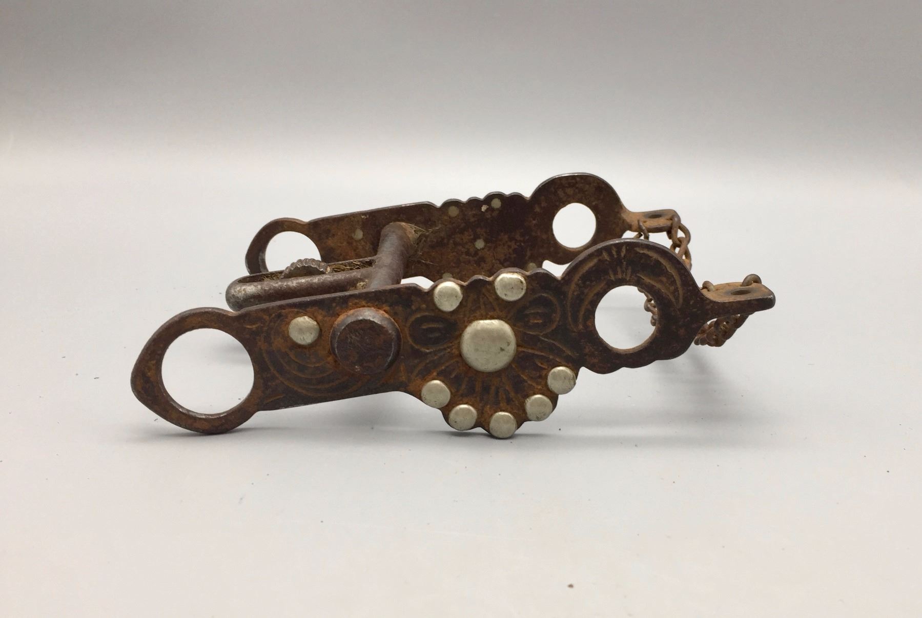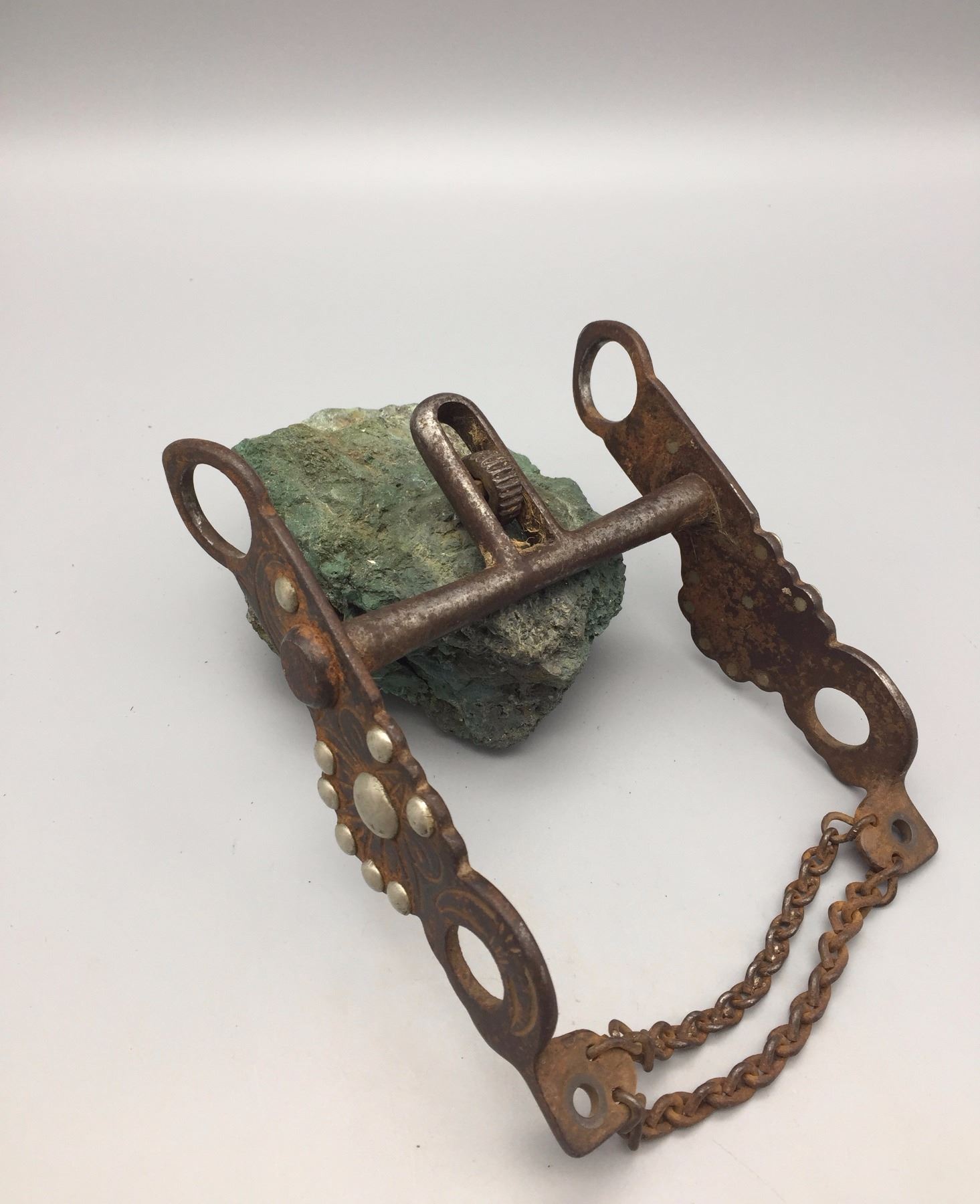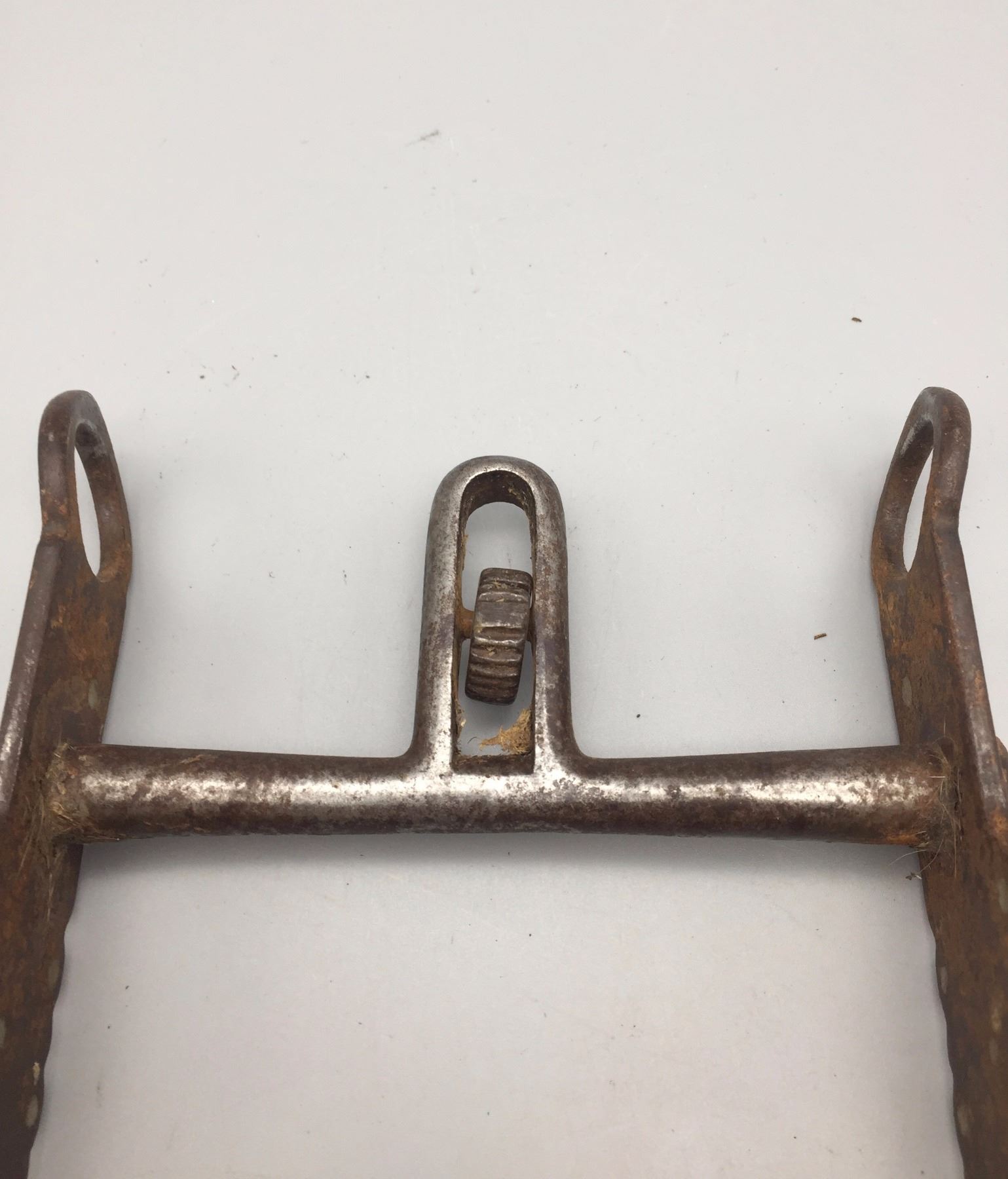 Maker: An old Buermann catalog bit. Approx. Age: Circa early 1900s. Size: Mouth 4 3/4”, 7” overall. Additional Info: An old Buermann "double kissing bird” bit with half breed mouth. Condition: Pretty good for it’s age, normal wear expected and missing the rein rings/chains. Please look closely at the pictures - they are an important part of our description. Shipping: There will be a $5 handling / packaging fee for shipping this lot. The actual cost of postage will be added on top of that.