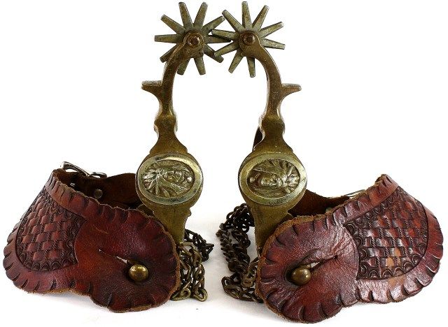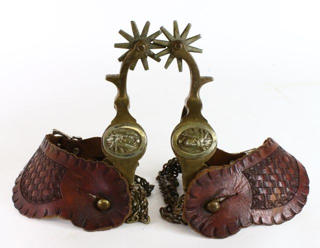 heel chains and stamped two piece leather straps Star stamped below buttons, all show fine condition. Est. 375-475