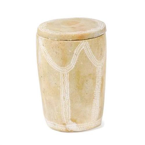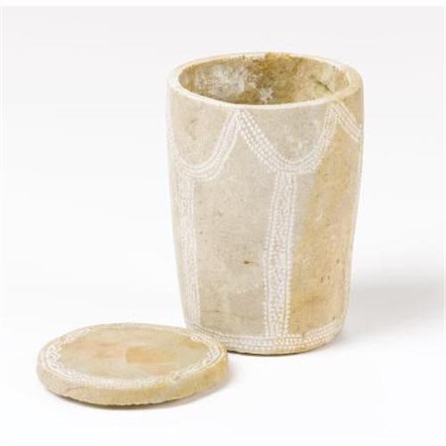 <B>Buff Colored Stone Jar with Lid</B></I><BR>Etched design around top of lid and down sides<BR>4-1/2 inches tall <BR><BR><b>Shipping:</b> Requires 3rd Party Shipping (<a target="_blank" href="http://www.heritageauctions.com/common/shipping.php">view shipping information</a>)