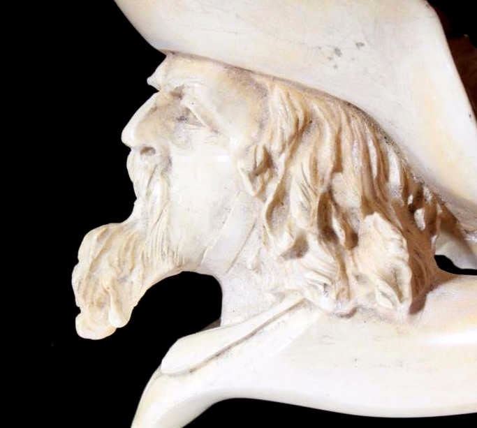 This is a hand carved original Meerschaum Pipe showing the bust of Buffalo Bill Cody. The piece is from circa 1890's and shows exquisite details. William Frederick "Buffalo Bill" Cody (1846–1917) was one of the most colorful figures of the American West and founder of the famed Buffalo Bill's Wild West Show. The piece is American Carved showing fantastic detail and quality. The piece is not signed. The meerschaum shows a crack in the pipe stem connection as shown, but other than that is in good condition. Measures overall 5 1/8"L x 2"H x 1.25"D with a approx. 1/2" bowl.