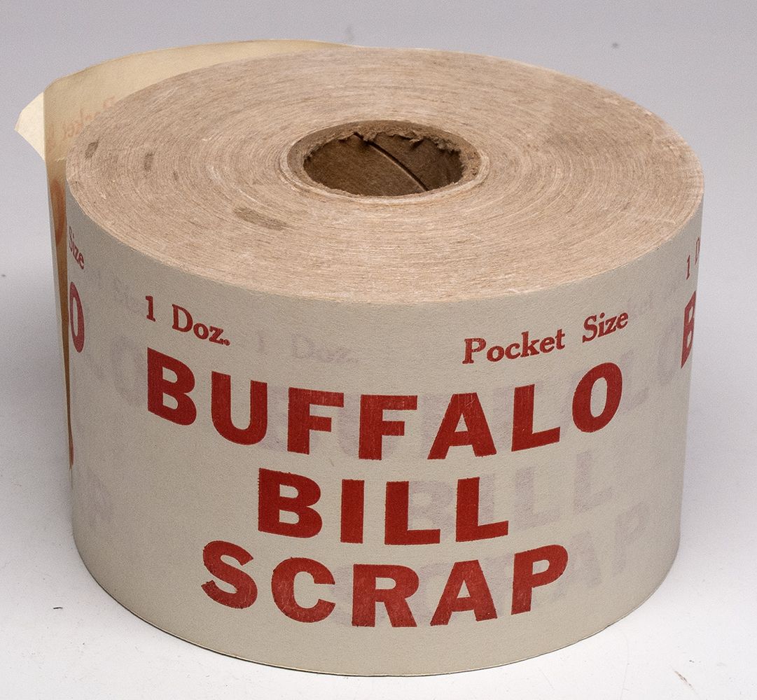 Large roll of "Buffalo Bill Scrap," with the words "1 Dozen" and "Pocket Size" on each piece. A strange and funny item. - HKA#66095