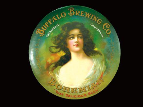 Buffalo Brewing Bohemian Charger, Sacramento, CA. One minor touch up smaller than a dime at 1:00 otherwise excellent condition. 24 inch dia.