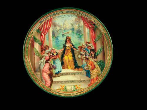 Buffalo Brewing Co. Tin Serving Tray, 1915 San Francisco Exposition, some scratches to the surface and the rim, fair to good condition, 12 inch diameter.