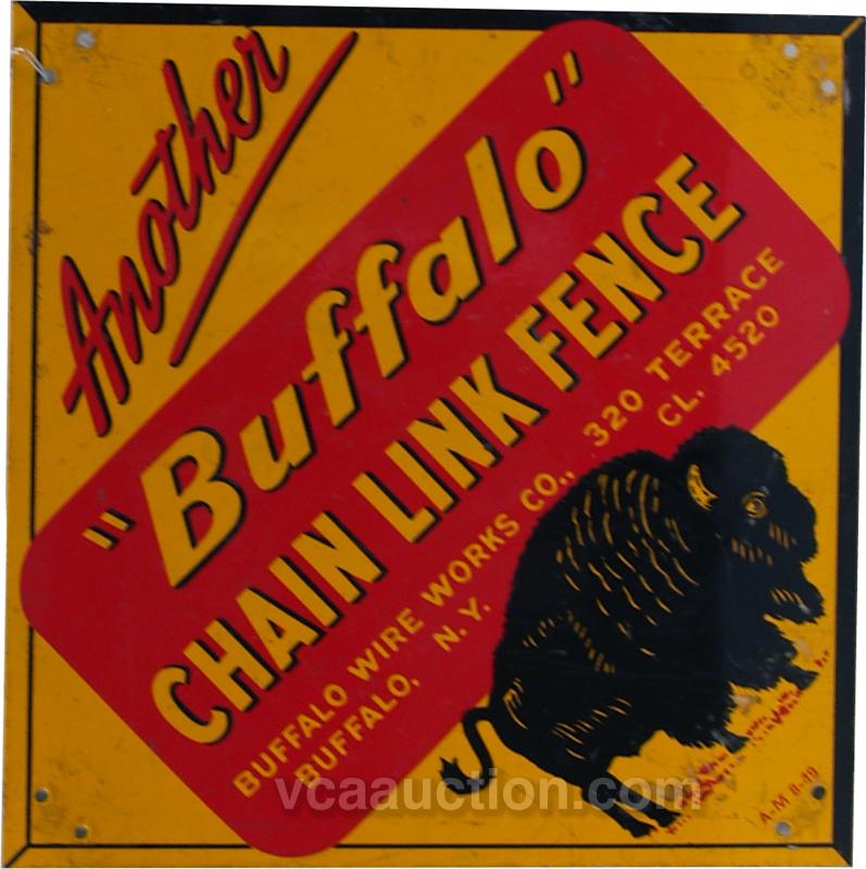 "Buffalo" Chain Link Fence Porcelain Sign, Buffalo Wire Works Co., Buffalo, NY. - 8" x 8"