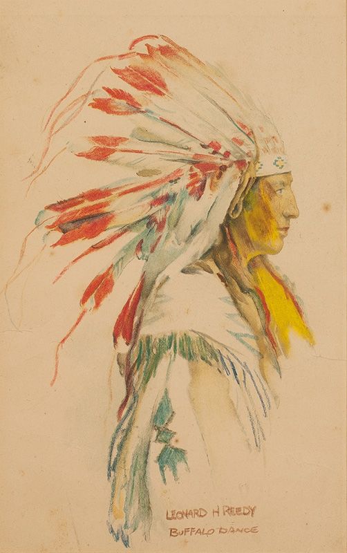 Leonard H. Reedy, 1899 - 1956 | Signed: Leonard H. Reedy Buffalo Dance, l/r | Media: Watercolor on paper | Dimensions: 9.5 by 6 inches