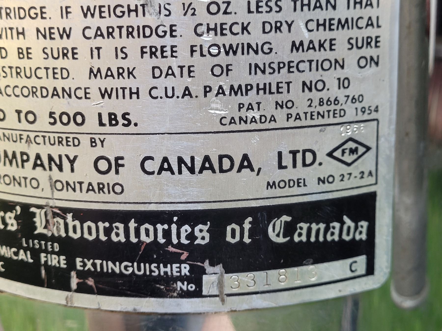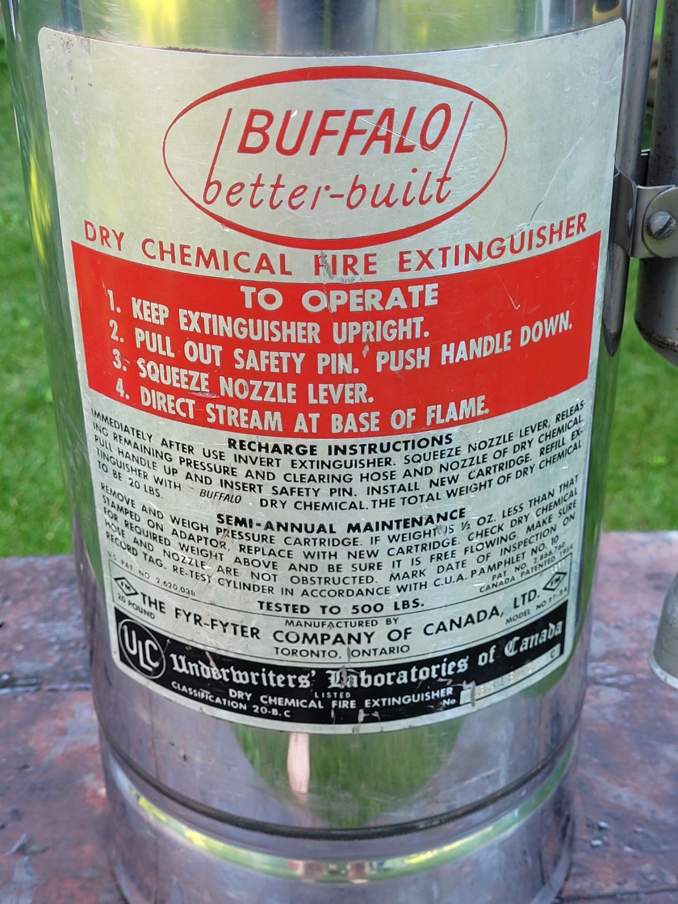 Buffalo Fire extinguisher. Patented 1954, made in Toronto.