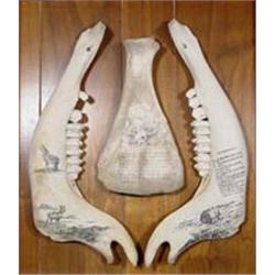 Buffalo Jawbone & Shoulder Blade Decorated with artwork by Colin McCray & Pat Devaney, with poetry by Gordon Eastman. Estimate $500-$700.
