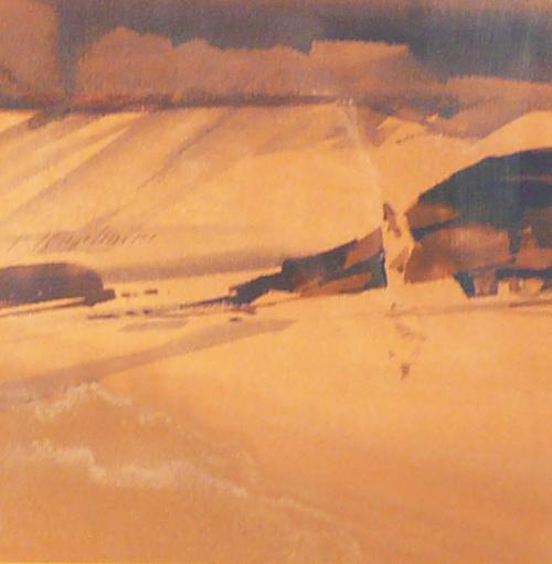 Buffalo Kaplinski (1943-) Watercolor "Sienna Bath" , Signed middle left 8 1/4" x 8 1/4"