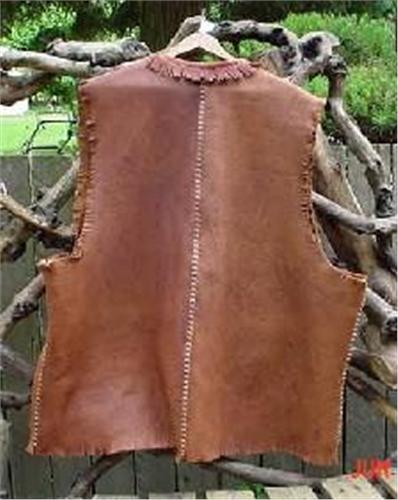 We can make buffalo leather (American bison) vests with Eastern Woodlands style beadwork and brass star snaps. The vests are entirely hand laced.