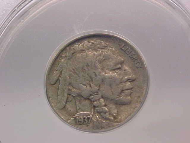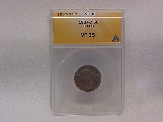 Buffalo Nickel 1937D 3 Legged ANACS VF35