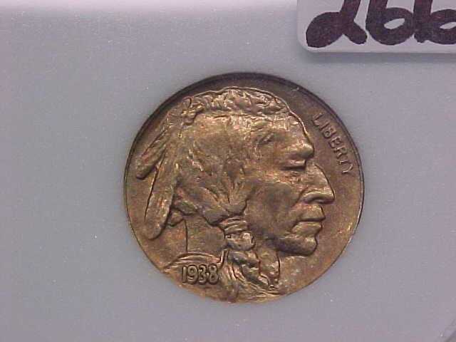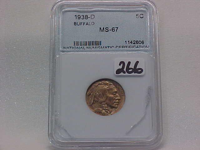 Buffalo Nickel 1938D NNC MS67 (detail weak, beautiful gold color) slab broken