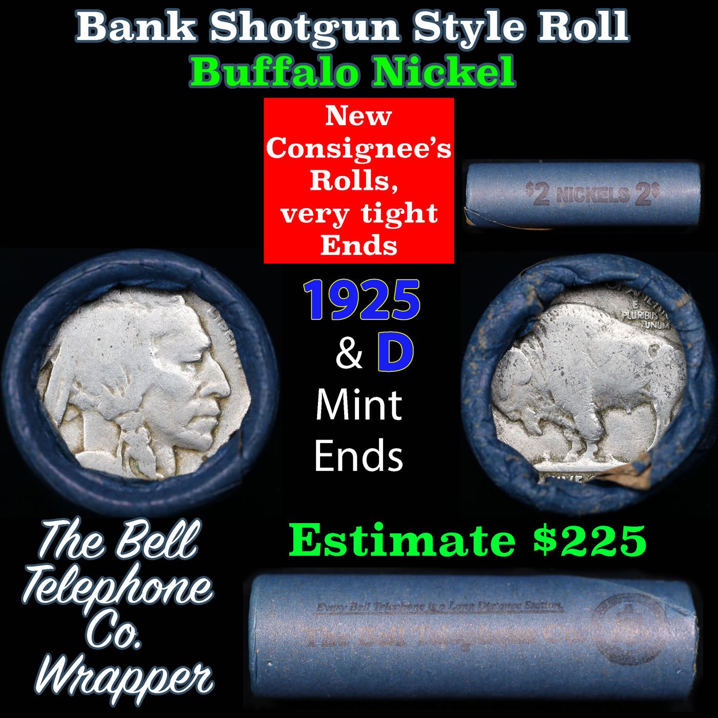 Buffalo Nickel Shotgun Roll in Old Bank Style $2 Nickels' Wrapper 1925 & D Mint Ends. The roll is held in an old, rare "Automat Horn & Hardart, Abbott Coin Counter" Bank style wrapper. They are all from one estate, the ends on these rolls are very tight. We will guarantee they are all full dates.