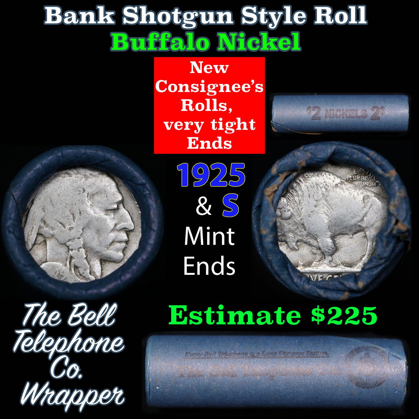 Buffalo Nickel Shotgun Roll in Old Bank Style $2 Nickels' Wrapper 1925 & S Mint Ends. The roll is held in an old, rare "Automat Horn & Hardart, Abbott Coin Counter" Bank style wrapper. They are all from one estate, the ends on these rolls are very tight. We will guarantee they are all full dates.