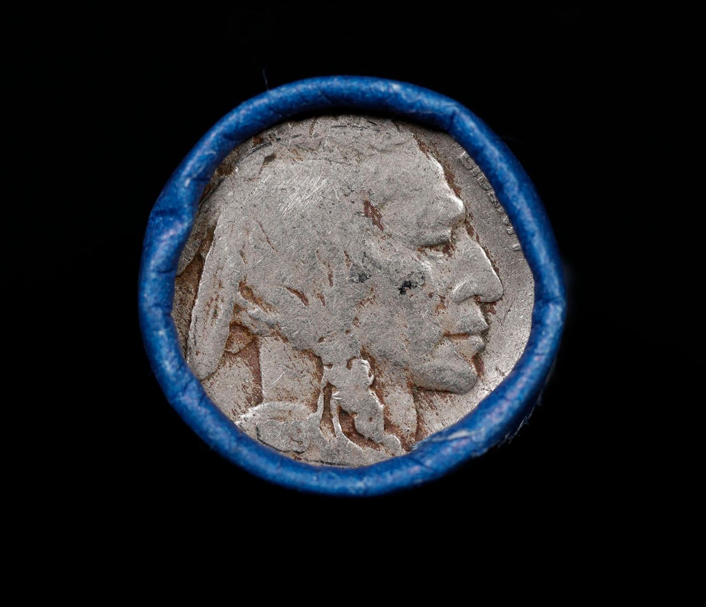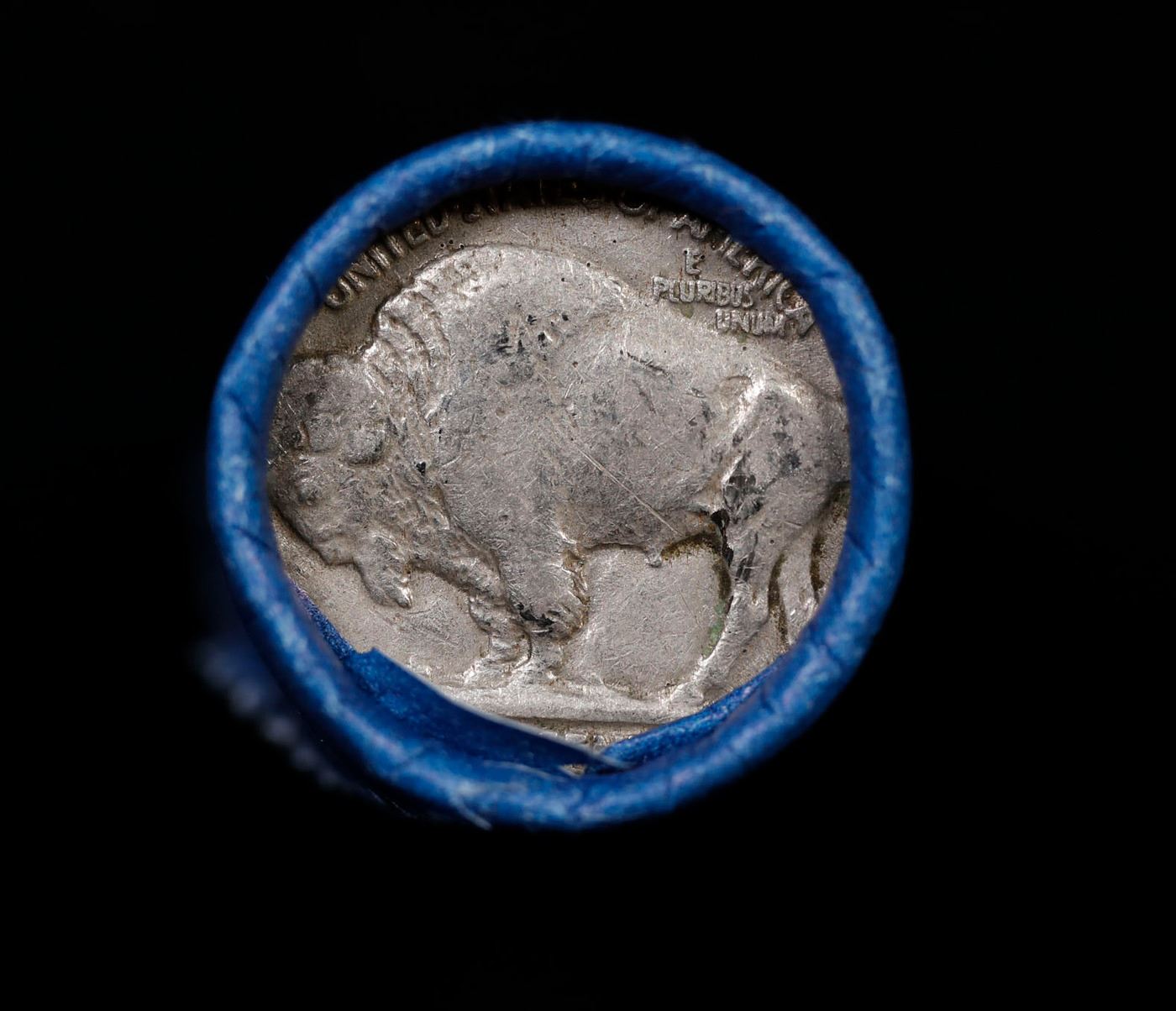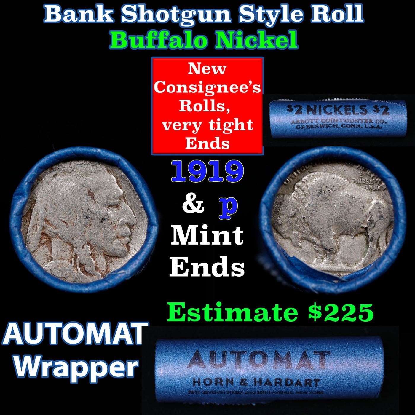 Buffalo Nickel Shotgun Roll in Old Bank Style 'Abbott Coin Counter & Automat' Wrapper 1919 & p Mint Ends. The roll is held in an old, rare "Bell Telephone Co." Bank style wrapper. This is the Bell Telephone logo from the 1960's. They are all frrom one Estate. The ends on these rolls are very tight. We will guarantee they are all full dates.