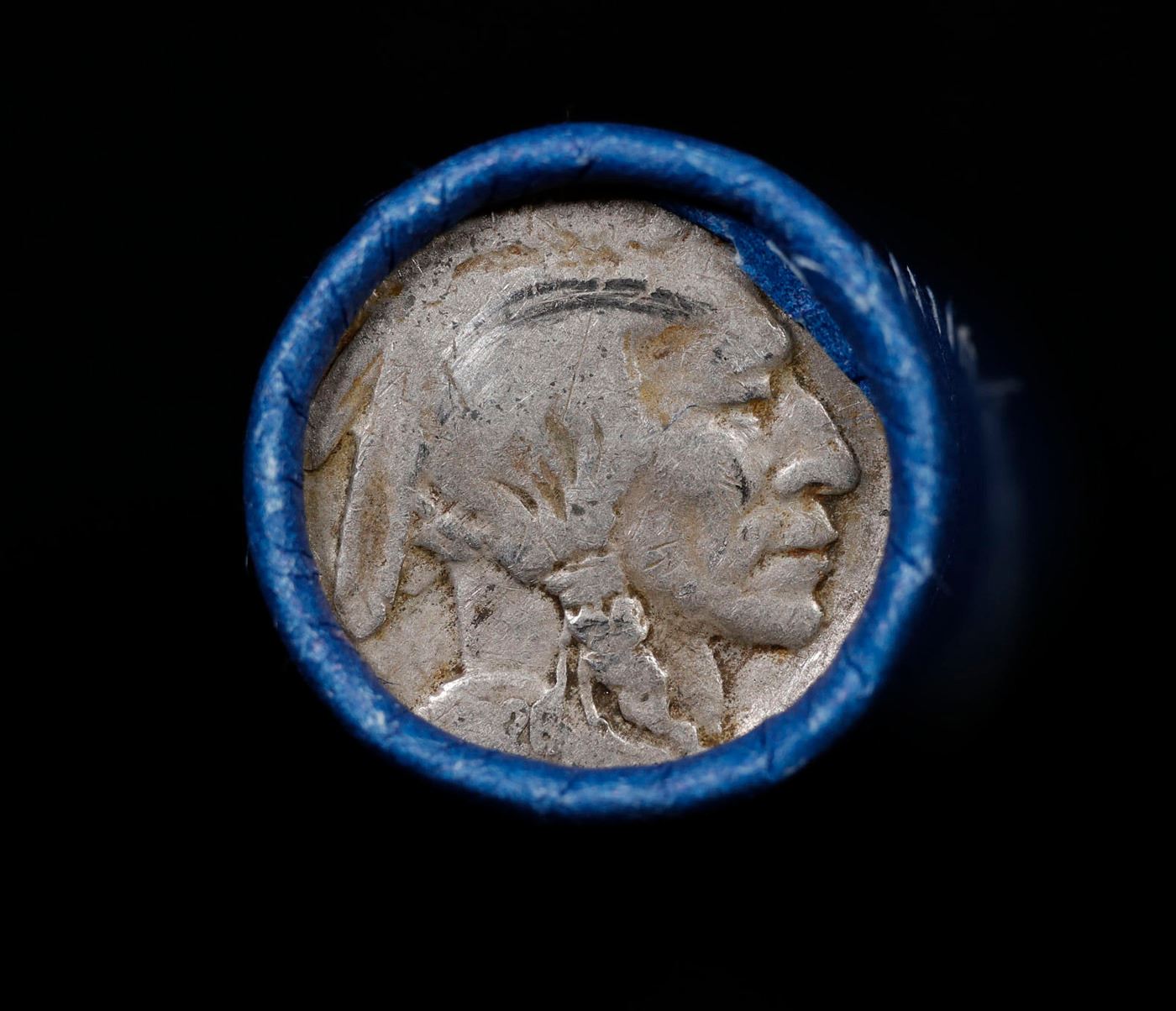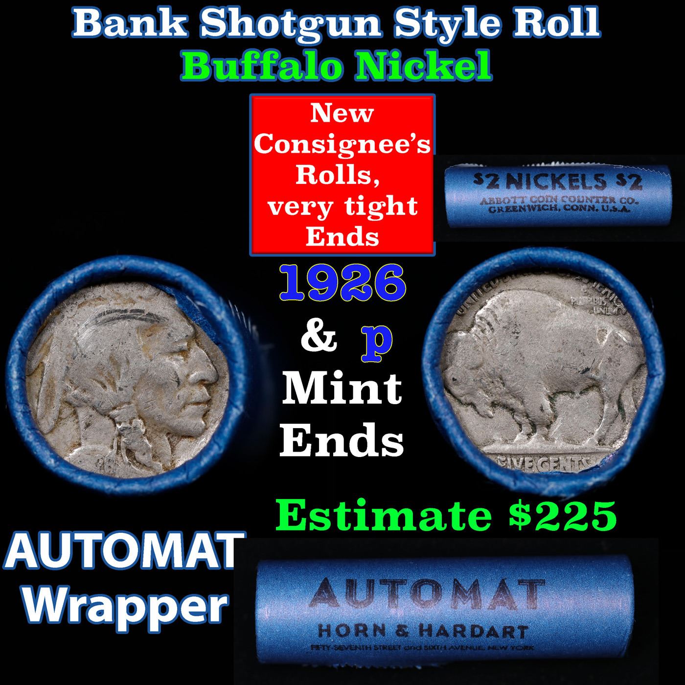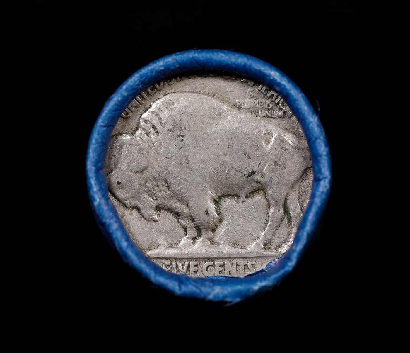 Buffalo Nickel Shotgun Roll in Old Bank Style 'Abbott Coin Counter & Automat' Wrapper 1926 & p Mint Ends. The roll is held in an old, rare "Bell Telephone Co." Bank style wrapper. This is the Bell Telephone logo from the 1960's. They are all frrom one Estate. The ends on these rolls are very tight. We will guarantee they are all full dates.