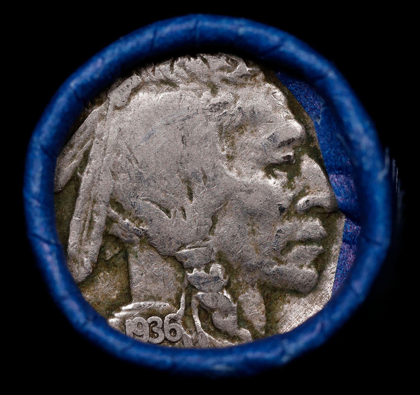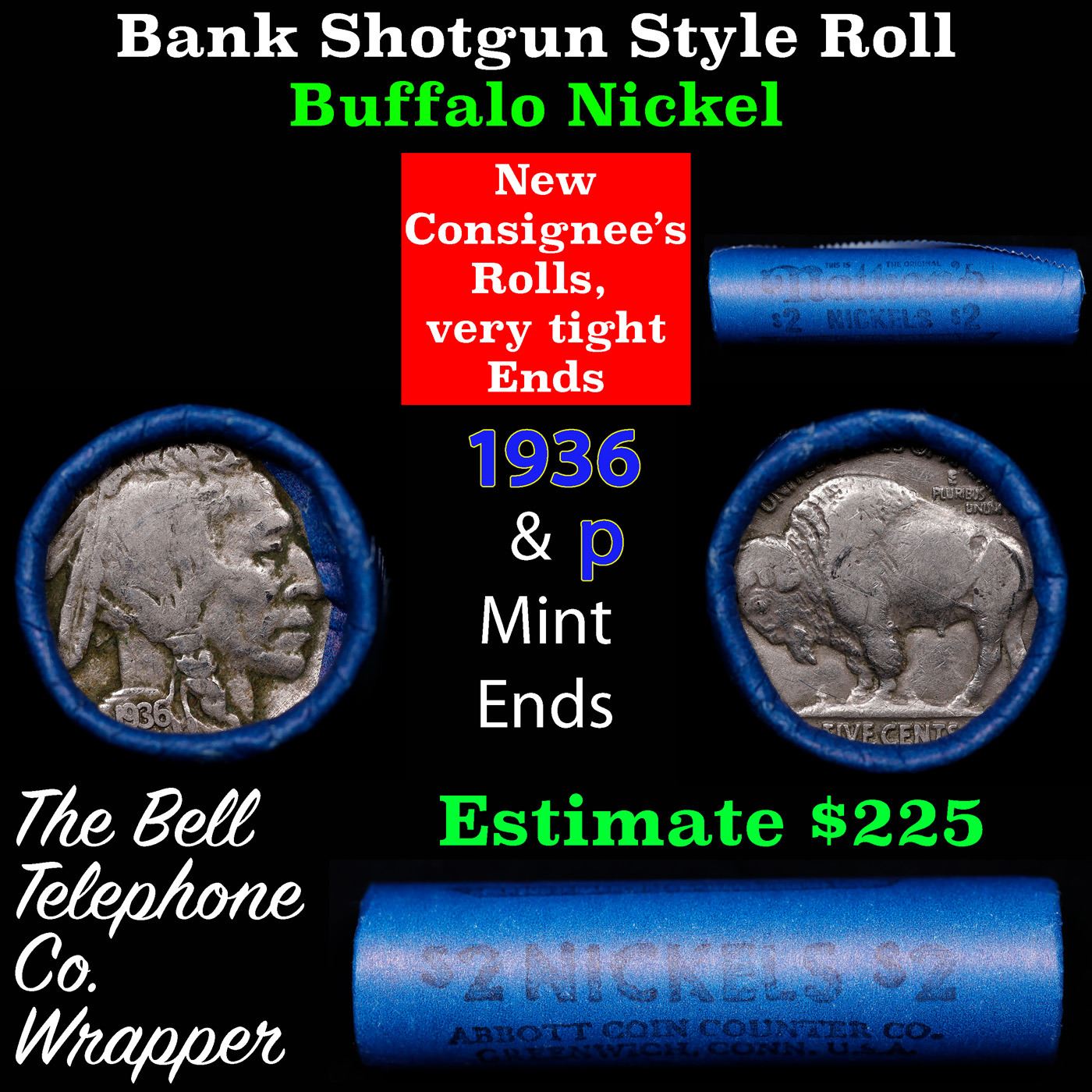 Buffalo Nickel Shotgun Roll in Old Bank Style 'Abbott Coin Counter' Wrapper 1936 & p Mint Ends. The roll is held in an old, rare "Brandt Abbott Coin Counter" Bank style wrapper. They are all from one estate, the ends on these rolls are very tight. We will guarantee they are all full dates.