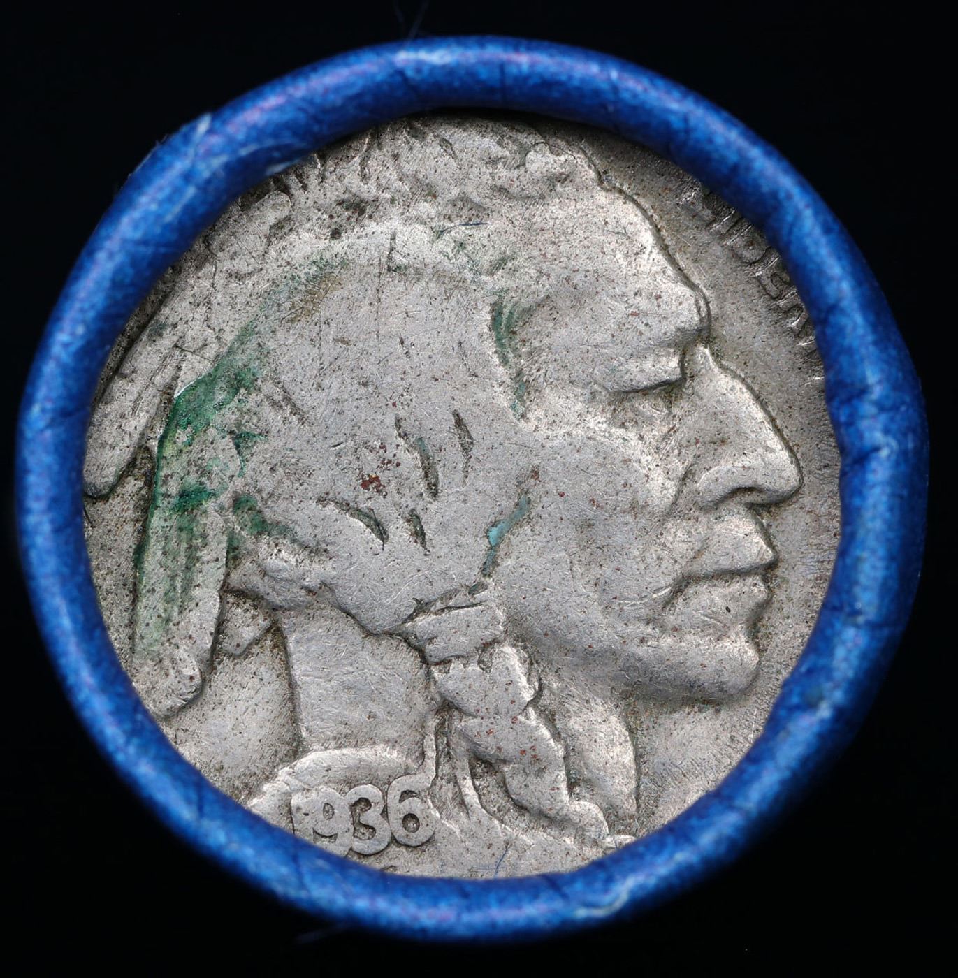 Buffalo Nickel Shotgun Roll in Old Bank Style ' Abbott Coin Counter' Wrapper 1936 & p Mint Ends. The roll is held in an old, rare "Brandt Abbott Coin Counter" Bank style wrapper. They are all from one estate, the ends on these rolls are very tight. We will guarantee they are all full dates.