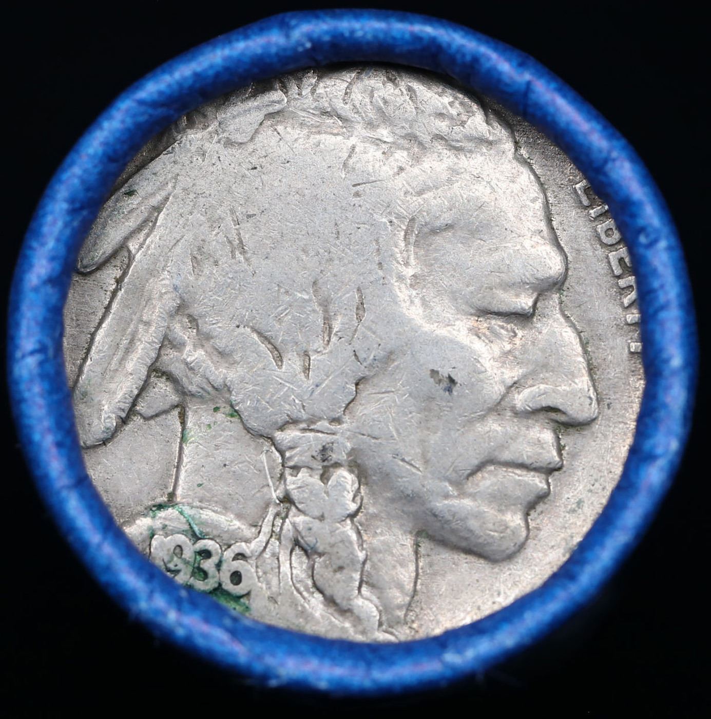 Buffalo Nickel Shotgun Roll in Old Bank Style ' Abbott Coin Counter' Wrapper 1936 & p Mint Ends. The roll is held in an old, rare "Brandt Abbott Coin Counter" Bank style wrapper. They are all from one estate, the ends on these rolls are very tight. We will guarantee they are all full dates.