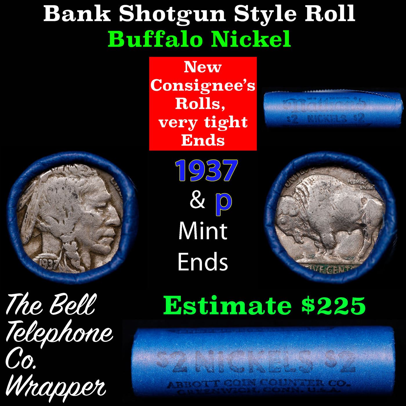Buffalo Nickel Shotgun Roll in Old Bank Style 'Abbott Coin Counter' Wrapper 1937 & p Mint Ends. The roll is held in an old, rare "Brandt Abbott Coin Counter" Bank style wrapper. They are all from one estate, the ends on these rolls are very tight. We will guarantee they are all full dates.
