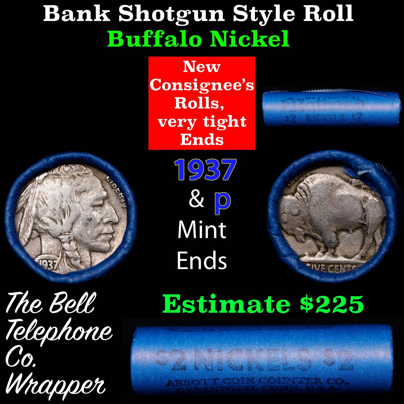 Buffalo Nickel Shotgun Roll in Old Bank Style 'Abbott Coin Counter' Wrapper 1937 & p Mint Ends. The roll is held in an old, rare "Brandt Abbott Coin Counter" Bank style wrapper. They are all from one estate, the ends on these rolls are very tight. We will guarantee they are all full dates.