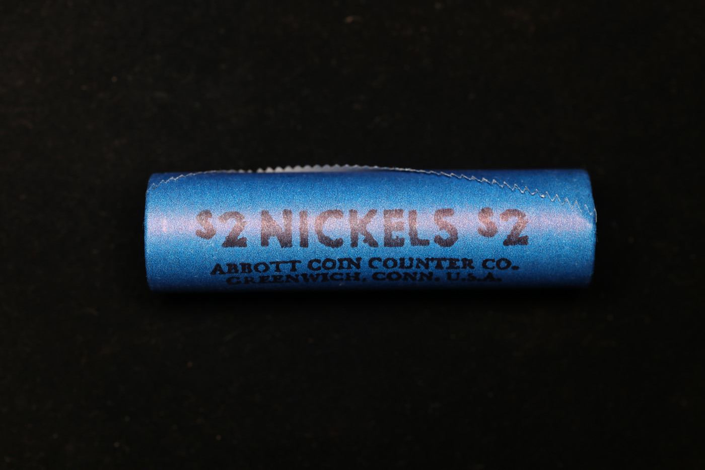 Buffalo Nickel Shotgun Roll in Old Bank Style 'Automat Horn & Hardart, Abbott Coin Counter' Wrapper