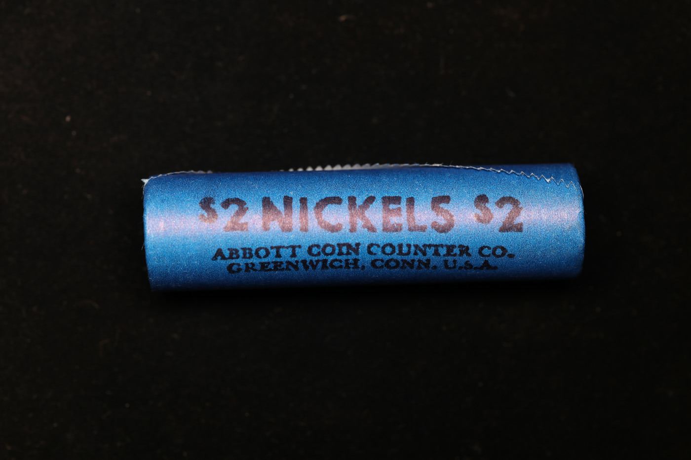Buffalo Nickel Shotgun Roll in Old Bank Style 'Automat Horn & Hardart, Abbott Coin Counter' Wrapper