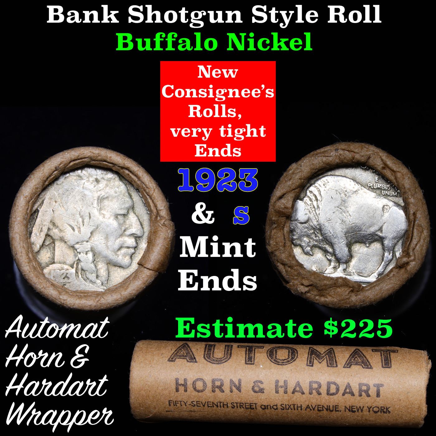 Buffalo Nickel Shotgun Roll in Old Bank Style 'Automat Horn & Hardart' Wrapper 1923 & s Mint Ends. The roll is held in an old, rare 'Automat Horn & Hardart' Bank style wrapper. They are all frrom one Estate. The ends on these rolls are very tight. We will guarantee they are all full dates.