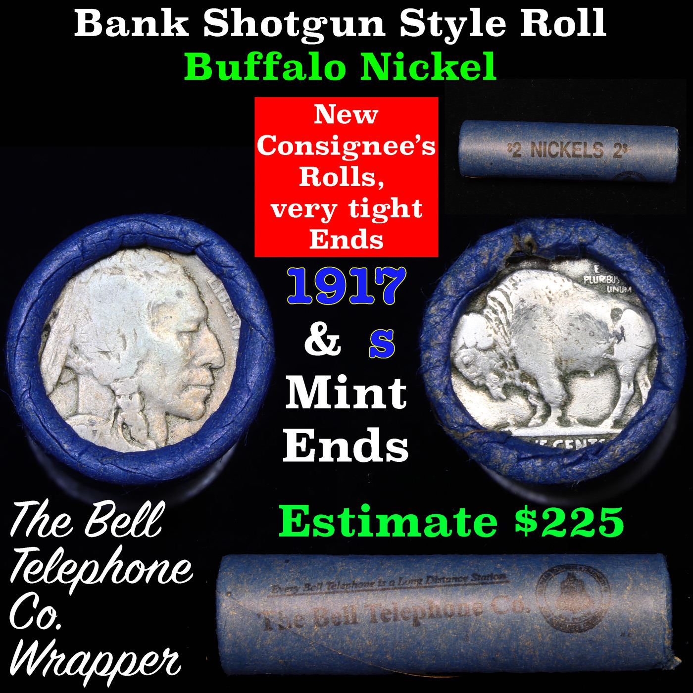 Buffalo Nickel Shotgun Roll in Old Bank Style 'Bell Telephone' Wrapper 1917 & s Mint Ends Grades
