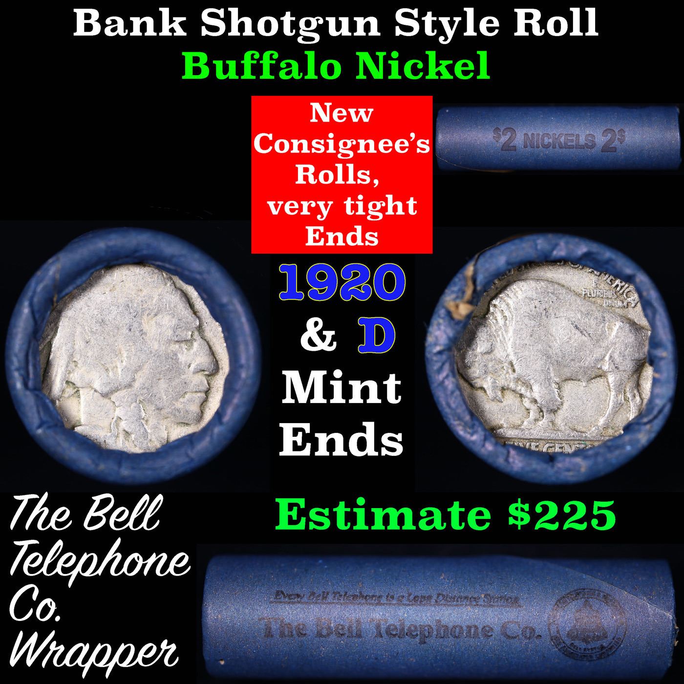 Buffalo Nickel Shotgun Roll in Old Bank Style 'Bell Telephone' Wrapper 1920 & d Mint Ends Roll