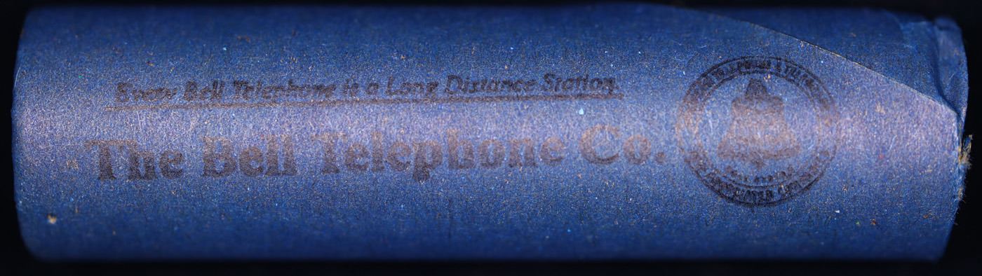 Buffalo Nickel Shotgun Roll in Old Bank Style 'Bell Telephone' Wrapper 1920 & d Mint Ends