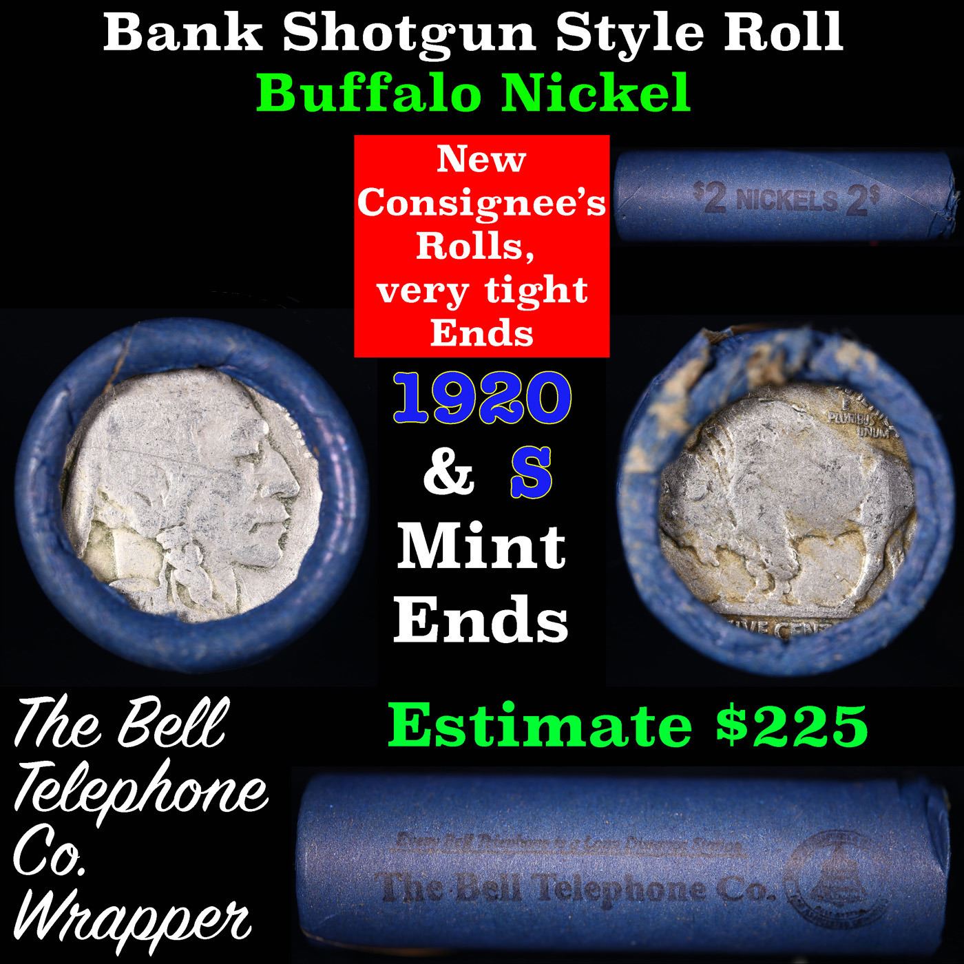 Buffalo Nickel Shotgun Roll in Old Bank Style 'Bell Telephone' Wrapper 1920& s Mint Ends
