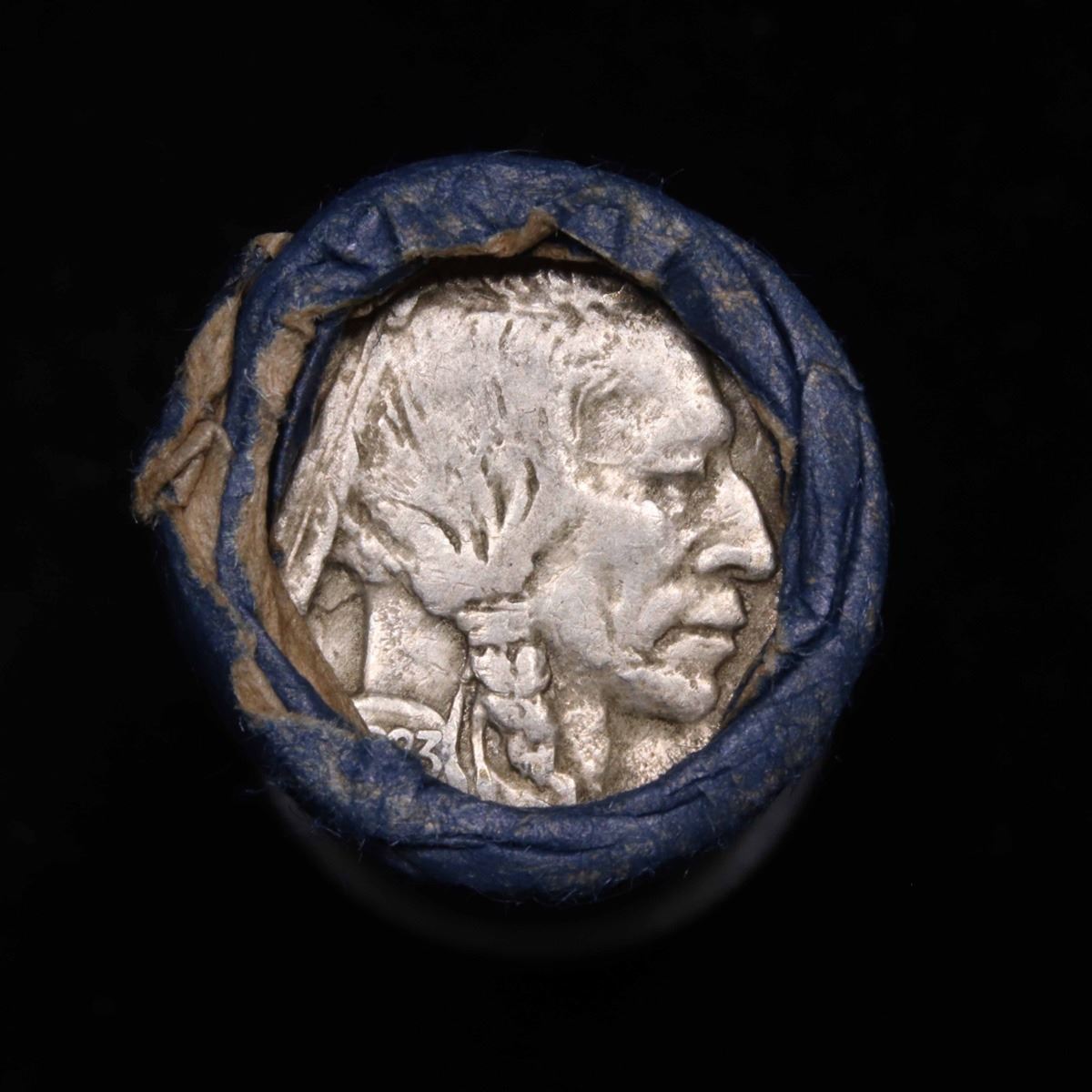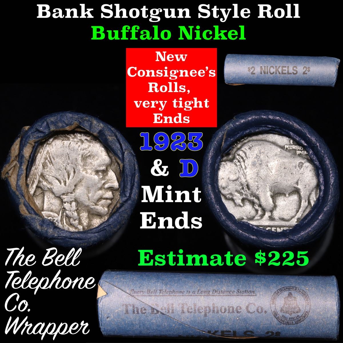 Buffalo Nickel Shotgun Roll in Old Bank Style 'Bell Telephone' Wrapper 1923& d Mint Ends. The roll is held in an old, rare "Bell Telephone Co." Bank style wrapper. This is the Bell Telephone logo from the 1960's. They are all frrom one Estate. The ends on these rolls are very tight. We will guarantee they are all full dates.