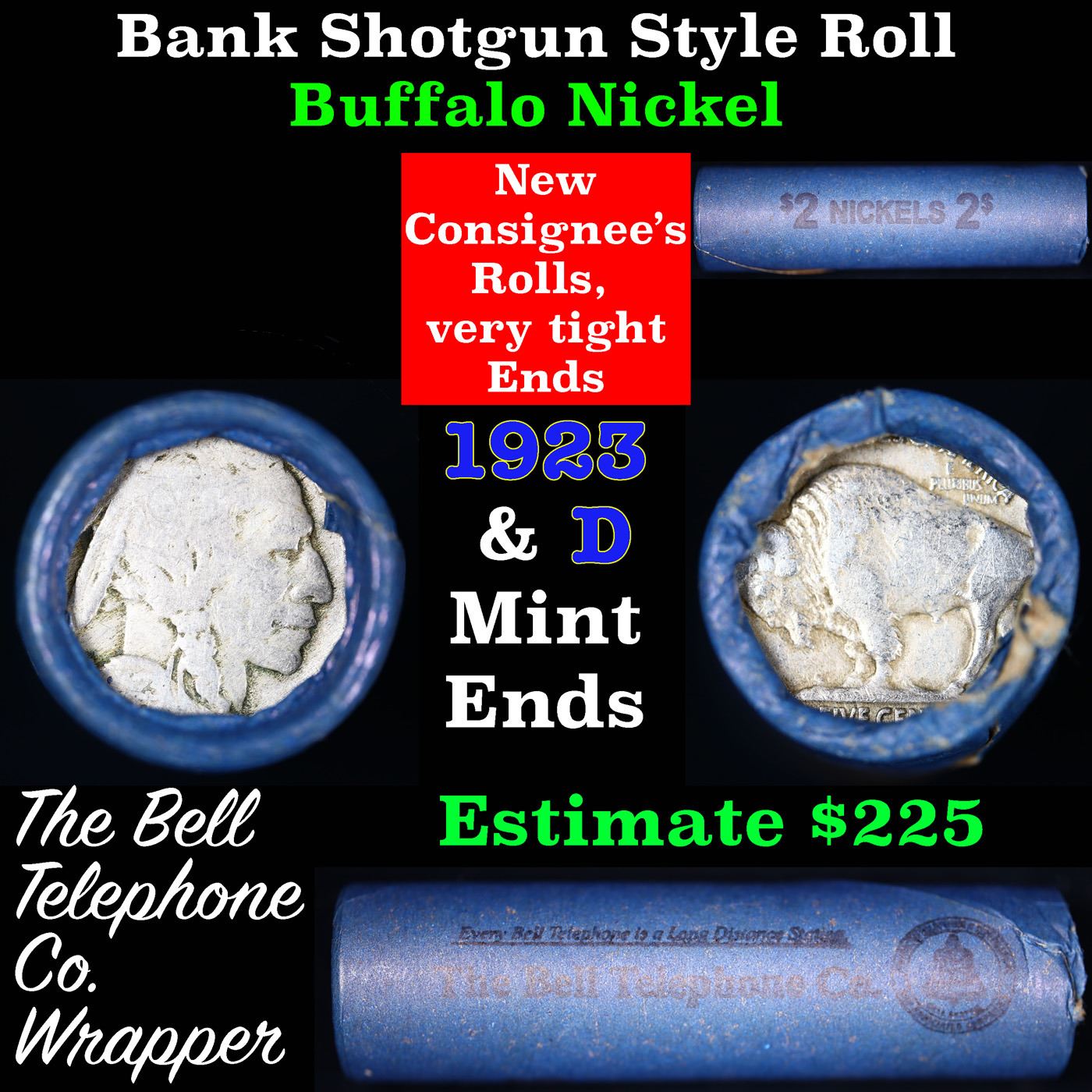 Buffalo Nickel Shotgun Roll in Old Bank Style 'Bell Telephone' Wrapper 1923 & d Mint Ends Roll
