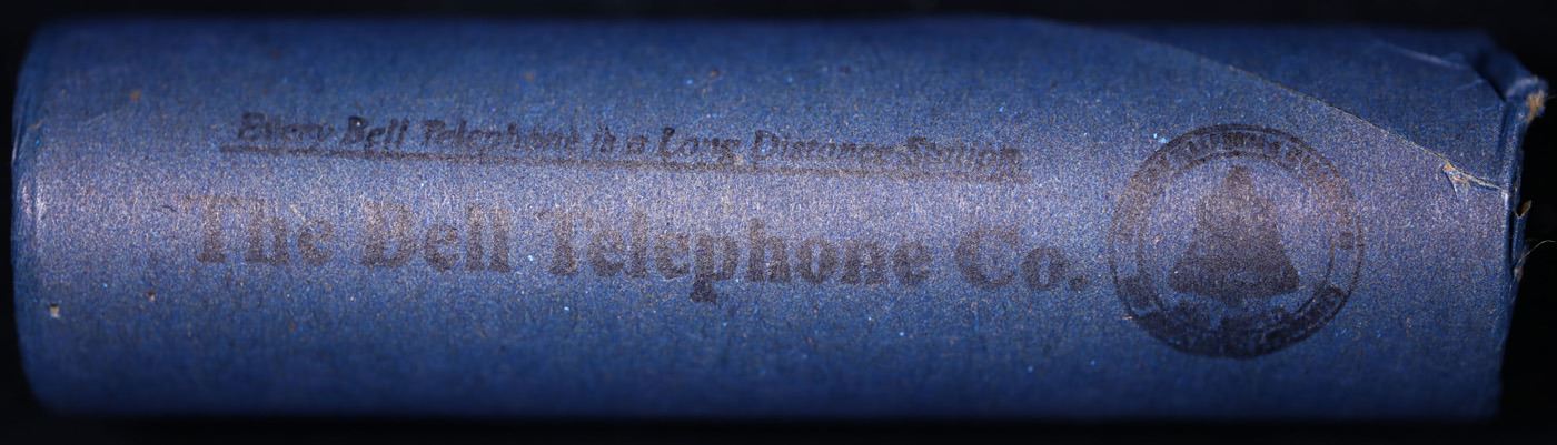 Buffalo Nickel Shotgun Roll in Old Bank Style 'Bell Telephone' Wrapper 1924 & S Mint Ends. The roll is held in an old, rare "Bell Telephone Co." Bank style wrapper. This is the Bell Telephone logo from the 1960's. They are all frrom one Estate. The ends on these rolls are very tight. We will guarantee they are all full dates.