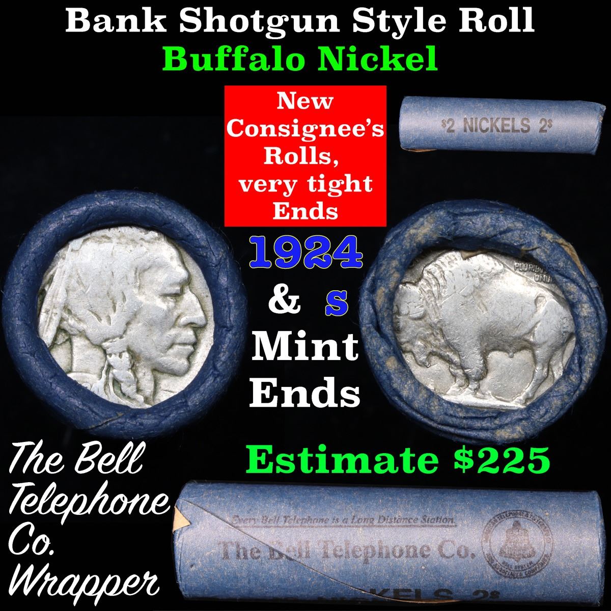 Buffalo Nickel Shotgun Roll in Old Bank Style 'Bell Telephone' Wrapper 1924 & s Mint Ends. The roll is held in an old, rare "Bell Telephone Co." Bank style wrapper. This is the Bell Telephone logo from the 1960's. They are all frrom one Estate. The ends on these rolls are very tight. We will guarantee they are all full dates.