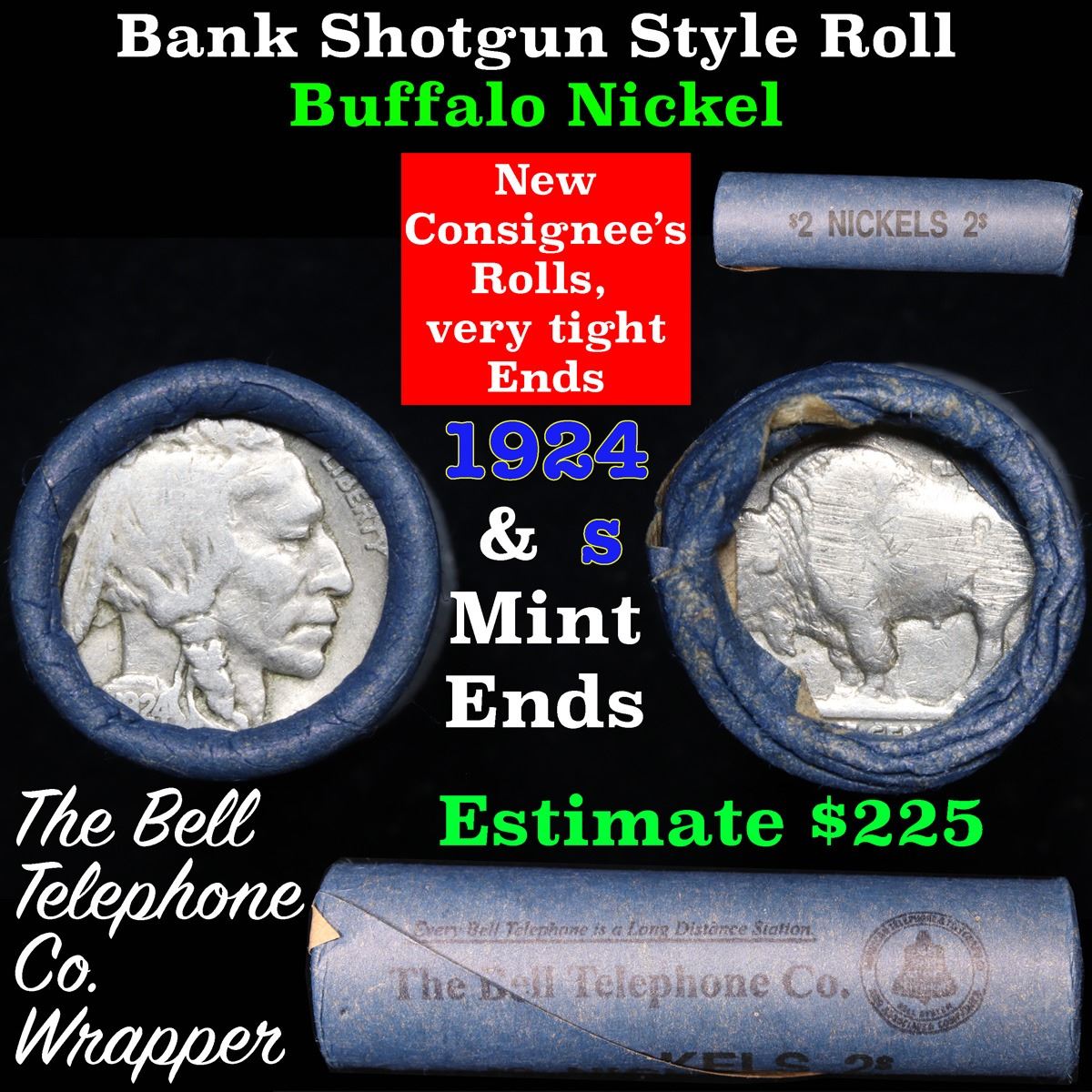 Buffalo Nickel Shotgun Roll in Old Bank Style 'Bell Telephone' Wrapper 1924 & s Mint Ends. The roll is held in an old, rare "Bell Telephone Co." Bank style wrapper. This is the Bell Telephone logo from the 1960's. They are all frrom one Estate. The ends on these rolls are very tight. We will guarantee they are all full dates.