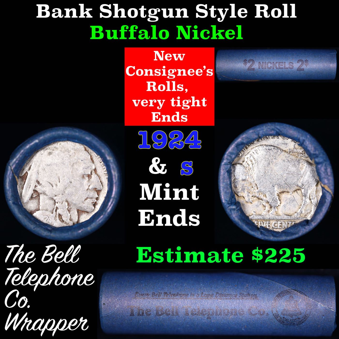 Buffalo Nickel Shotgun Roll in Old Bank Style 'Bell Telephone' Wrapper 1924 & s Mint Ends. The roll is held in an old, rare "Bell Telephone Co." Bank style wrapper. This is the Bell Telephone logo from the 1960's. They are all frrom one Estate. The ends on these rolls are very tight. We will guarantee they are all full dates.
