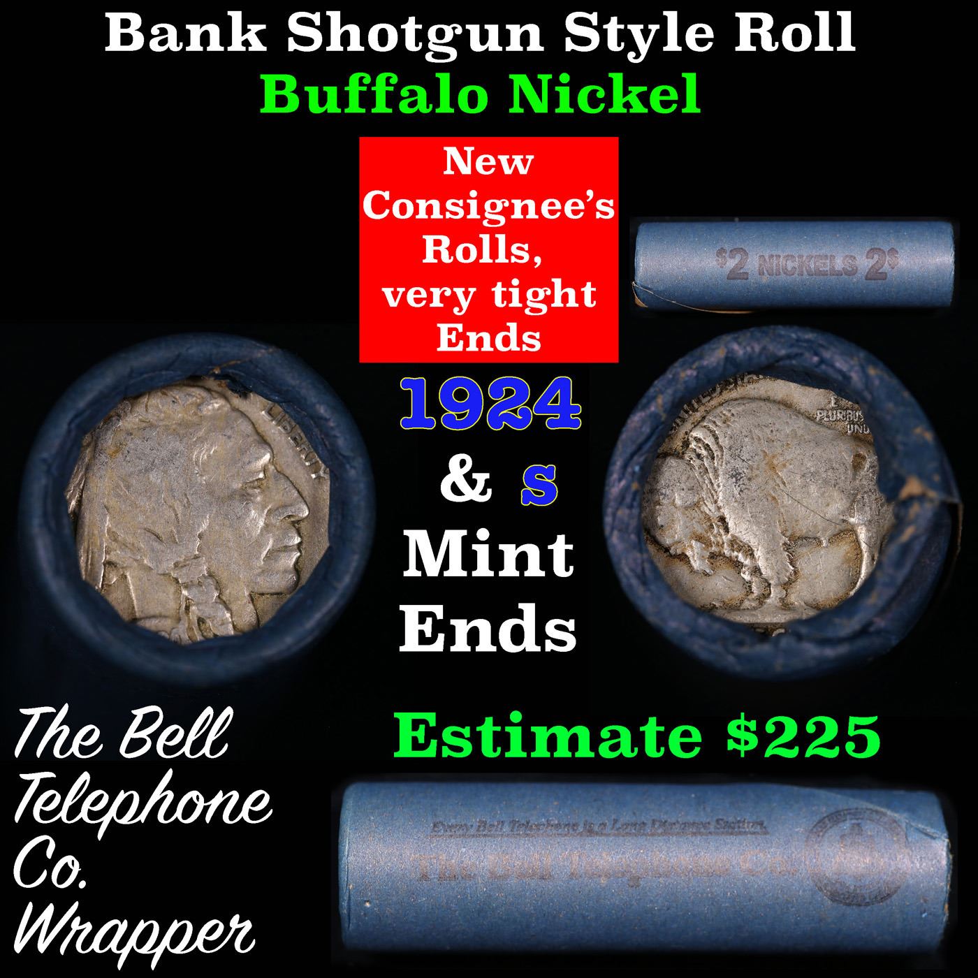 Buffalo Nickel Shotgun Roll in Old Bank Style 'Bell Telephone' Wrapper 1924 & s Mint Ends. The roll is held in an old, rare "Bell Telephone Co." Bank style wrapper. This is the Bell Telephone logo from the 1960's. They are all frrom one Estate. The ends on these rolls are very tight. We will guarantee they are all full dates.