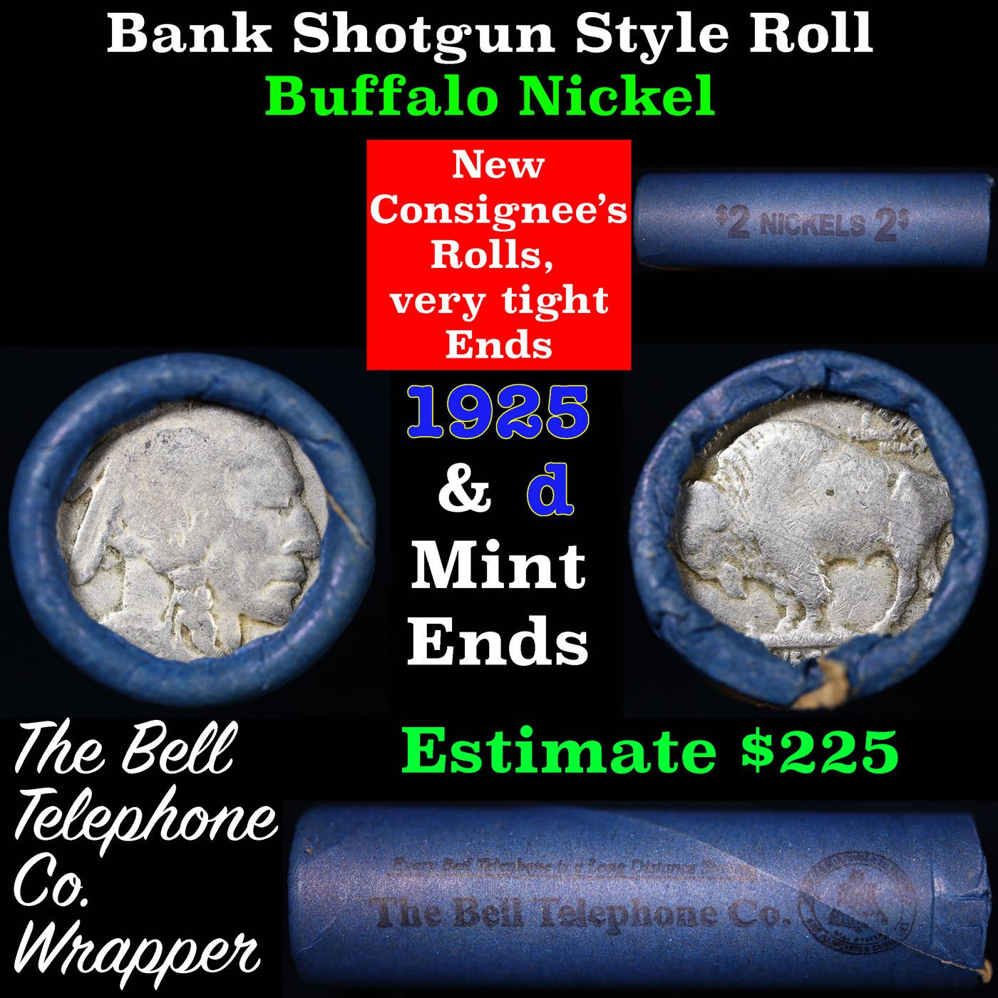 Buffalo Nickel Shotgun Roll in Old Bank Style 'Bell Telephone' Wrapper 1925 & D Mint Ends. The roll is held in an old, rare "Bell Telephone Co." Bank style wrapper. This is the Bell Telephone logo from the 1960's. They are all frrom one Estate. The ends on these rolls are very tight. We will guarantee they are all full dates.