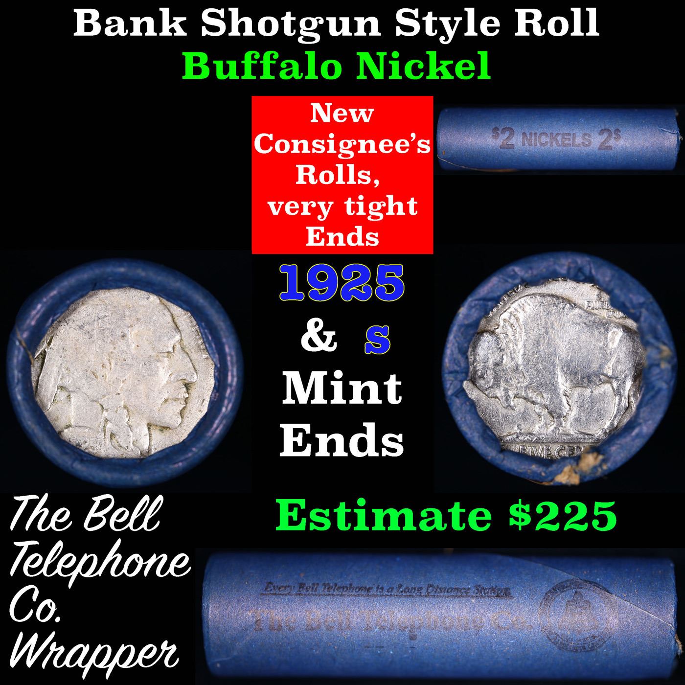 Buffalo Nickel Shotgun Roll in Old Bank Style 'Bell Telephone' Wrapper 1925 &s Mint Ends. The roll is held in an old, rare "Bell Telephone Co." Bank style wrapper. This is the Bell Telephone logo from the 1960's. They are all frrom one Estate. The ends on these rolls are very tight. We will guarantee they are all full dates.