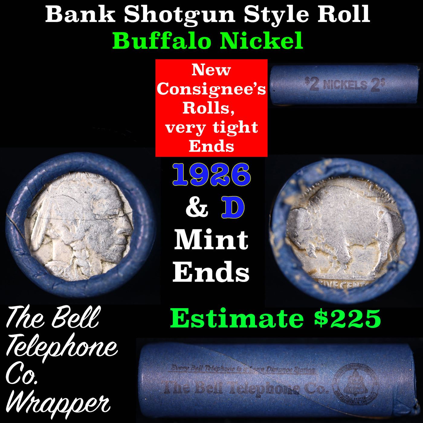 Buffalo Nickel Shotgun Roll in Old Bank Style 'Bell Telephone' Wrapper 1926 & d Mint Ends