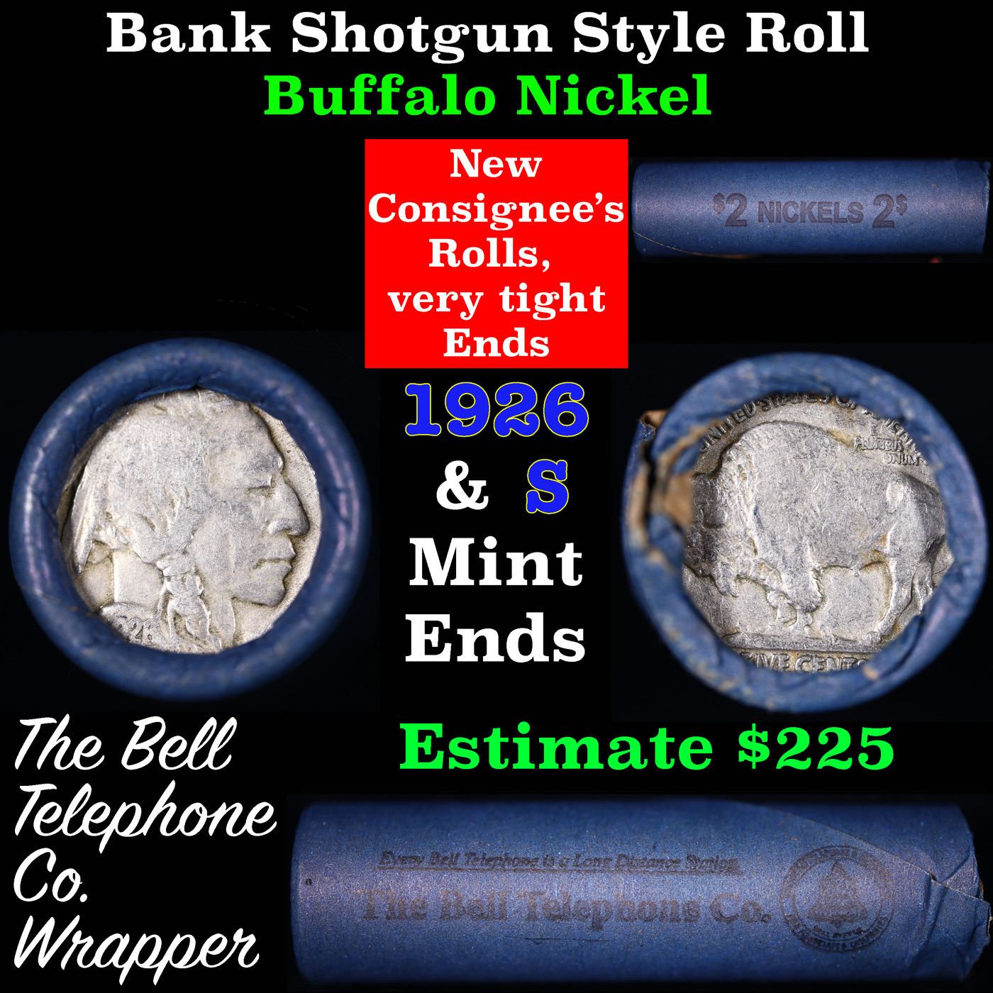 Buffalo Nickel Shotgun Roll in Old Bank Style 'Bell Telephone' Wrapper 1926 & s Mint Ends