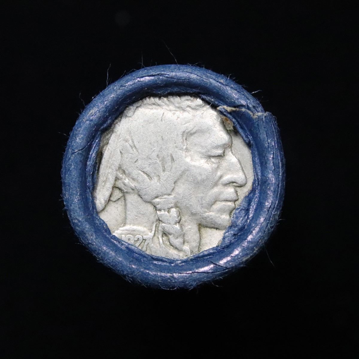 Buffalo Nickel Shotgun Roll in Old Bank Style 'Bell Telephone' Wrapper 1927 & d Mint Ends . .. The roll is held in an old, rare "Bell Telephone Co." Bank style wrapper. This is the Bell Telephone logo from the 1960's. They are all frrom one Estate. The ends on these rolls are very tight. We will guarantee they are all full dates.