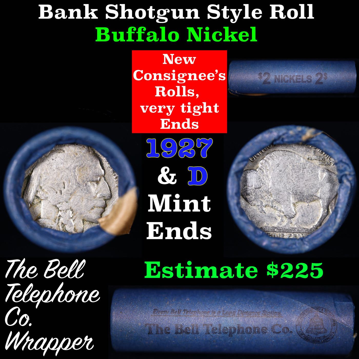 Buffalo Nickel Shotgun Roll in Old Bank Style 'Bell Telephone' Wrapper 1927 & d Mint Ends