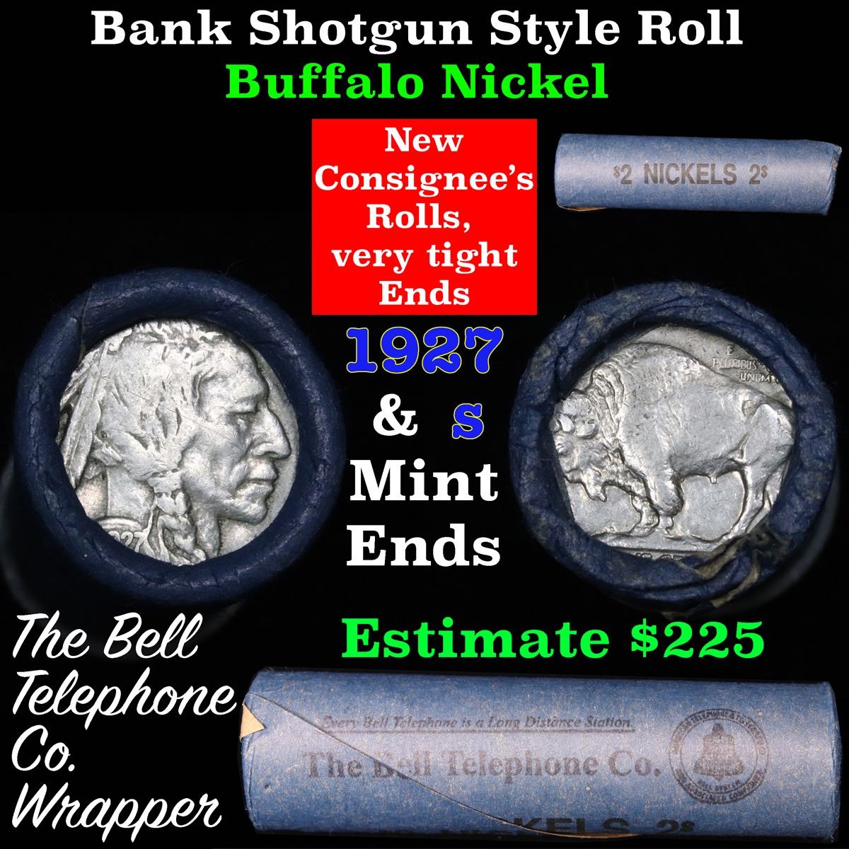 Buffalo Nickel Shotgun Roll in Old Bank Style 'Bell Telephone' Wrapper 1927 & s Mint Ends. The roll is held in an old, rare "Bell Telephone Co." Bank style wrapper. This is the Bell Telephone logo from the 1960's. They are all frrom one Estate. The ends on these rolls are very tight. We will guarantee they are all full dates.