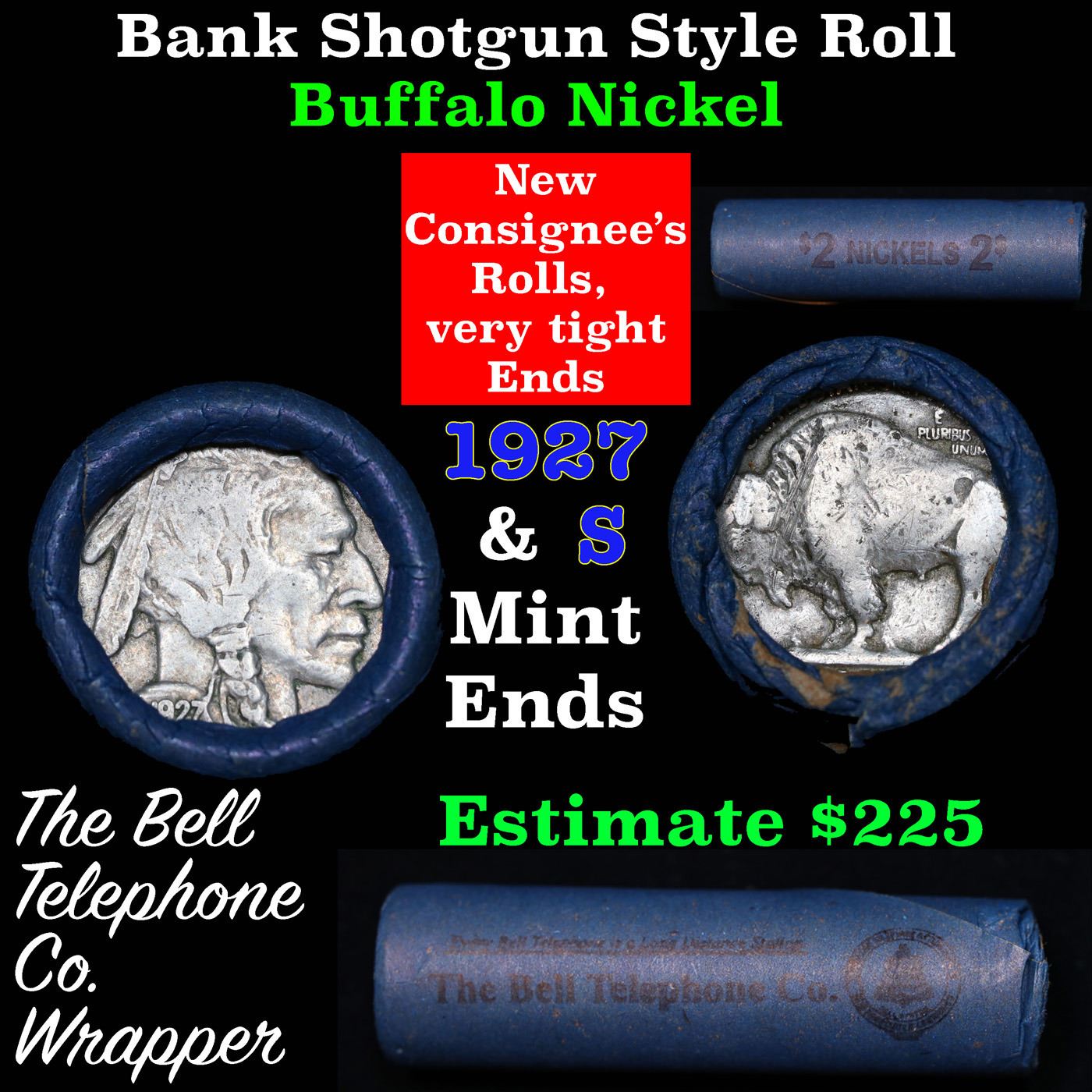 Buffalo Nickel Shotgun Roll in Old Bank Style 'Bell Telephone' Wrapper 1927 & s Mint Ends. The roll is held in an old, rare "Bell Telephone Co." Bank style wrapper. This is the Bell Telephone logo from the 1960's. They are all frrom one Estate. The ends on these rolls are very tight. We will guarantee they are all full dates.