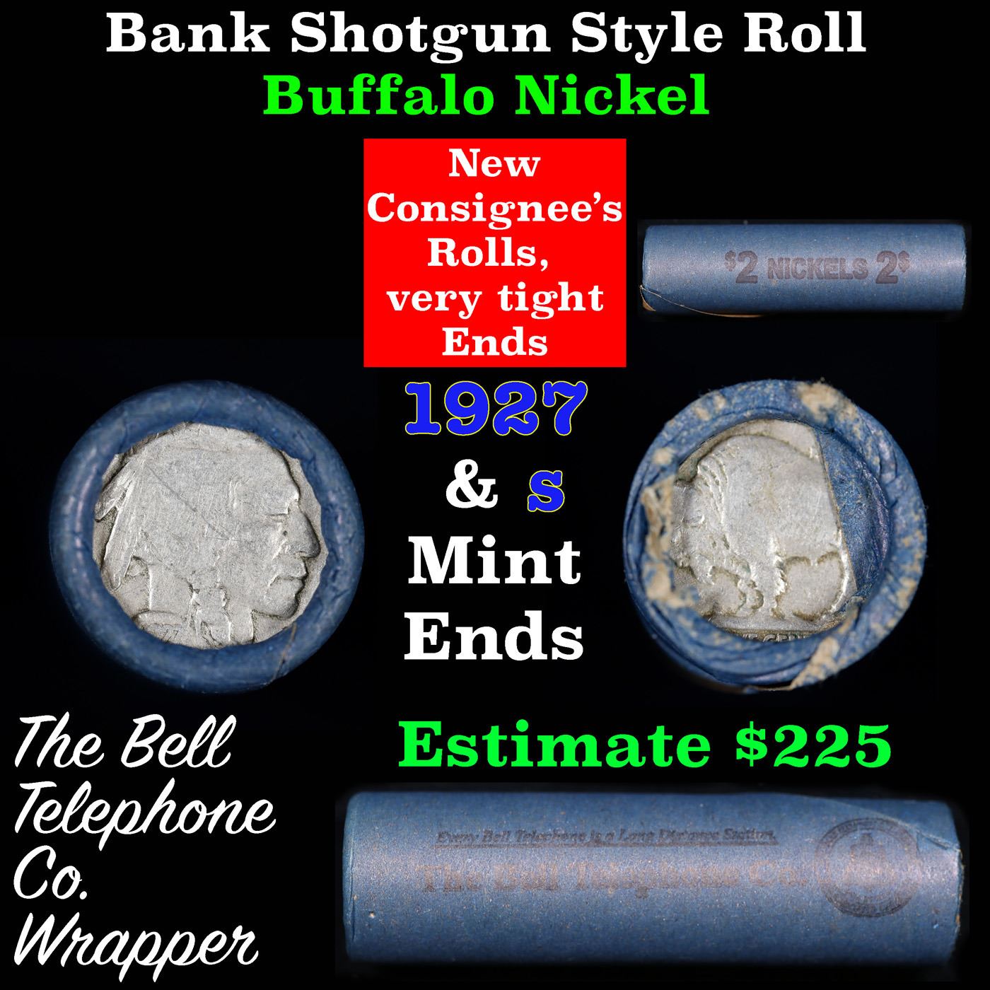 Buffalo Nickel Shotgun Roll in Old Bank Style 'Bell Telephone' Wrapper 1927 & s Mint Ends. The roll is held in an old, rare "Bell Telephone Co." Bank style wrapper. This is the Bell Telephone logo from the 1960's. They are all frrom one Estate. The ends on these rolls are very tight. We will guarantee they are all full dates.
