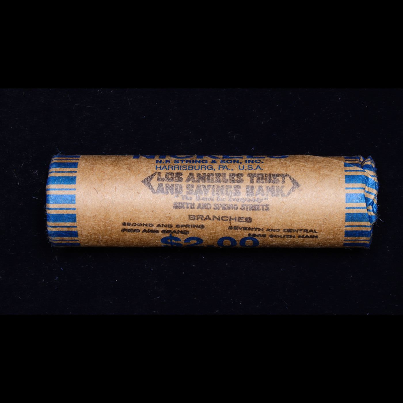 Buffalo Nickel Shotgun Roll in Old Bank Style 'Los Angeles Trust And SavingsBank' Wrapper 1916 & d