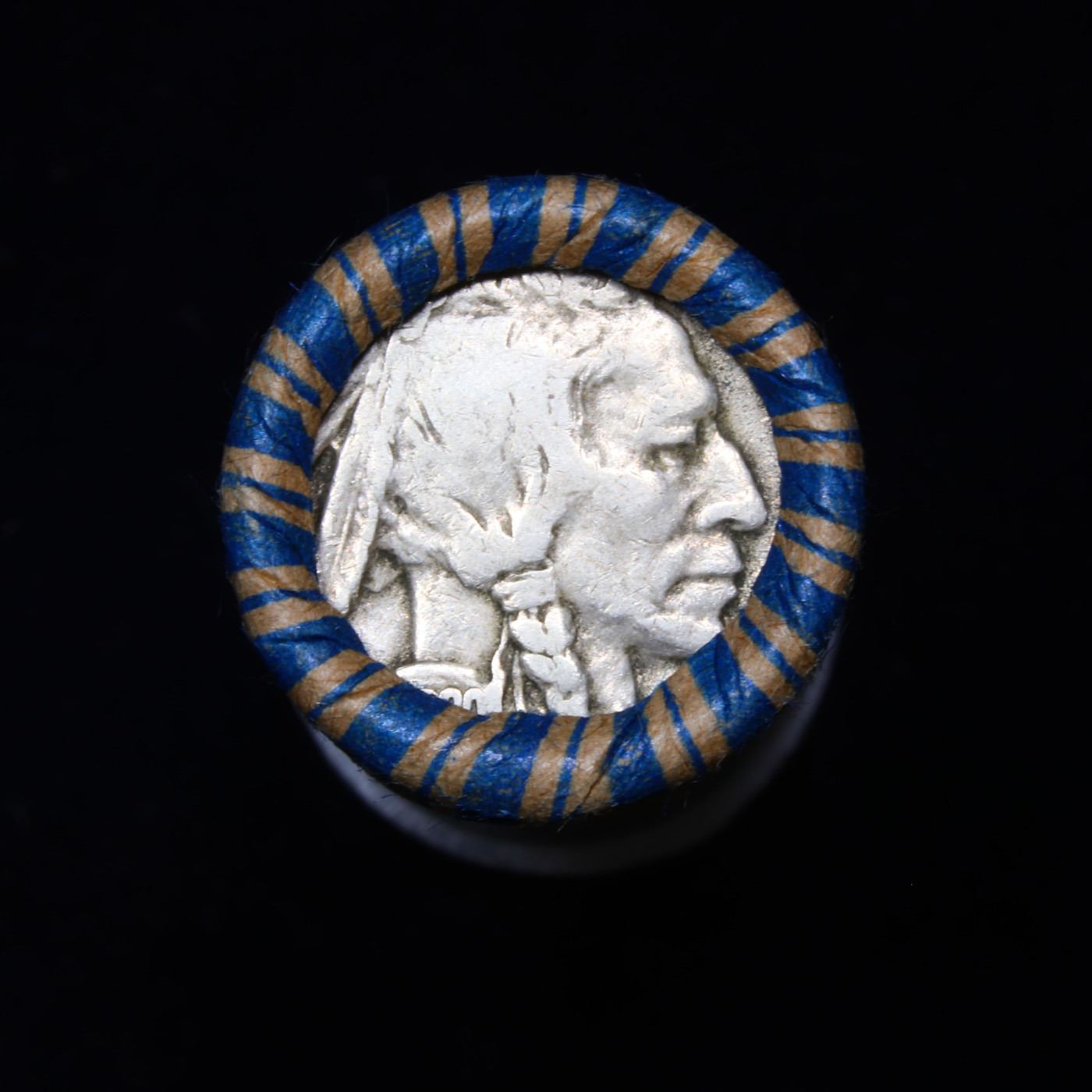 Buffalo Nickel Shotgun Roll in Old Bank Style 'Los Angeles Trust And Savins Bank' Wrapper 1920 & d Mint Ends. The roll is held in an old, rare "Los Angeles Trust And Savings Bank." Bank style wrapper. They are all frrom one Estate. The ends on these rolls are very tight. We will guarantee they are all full dates.