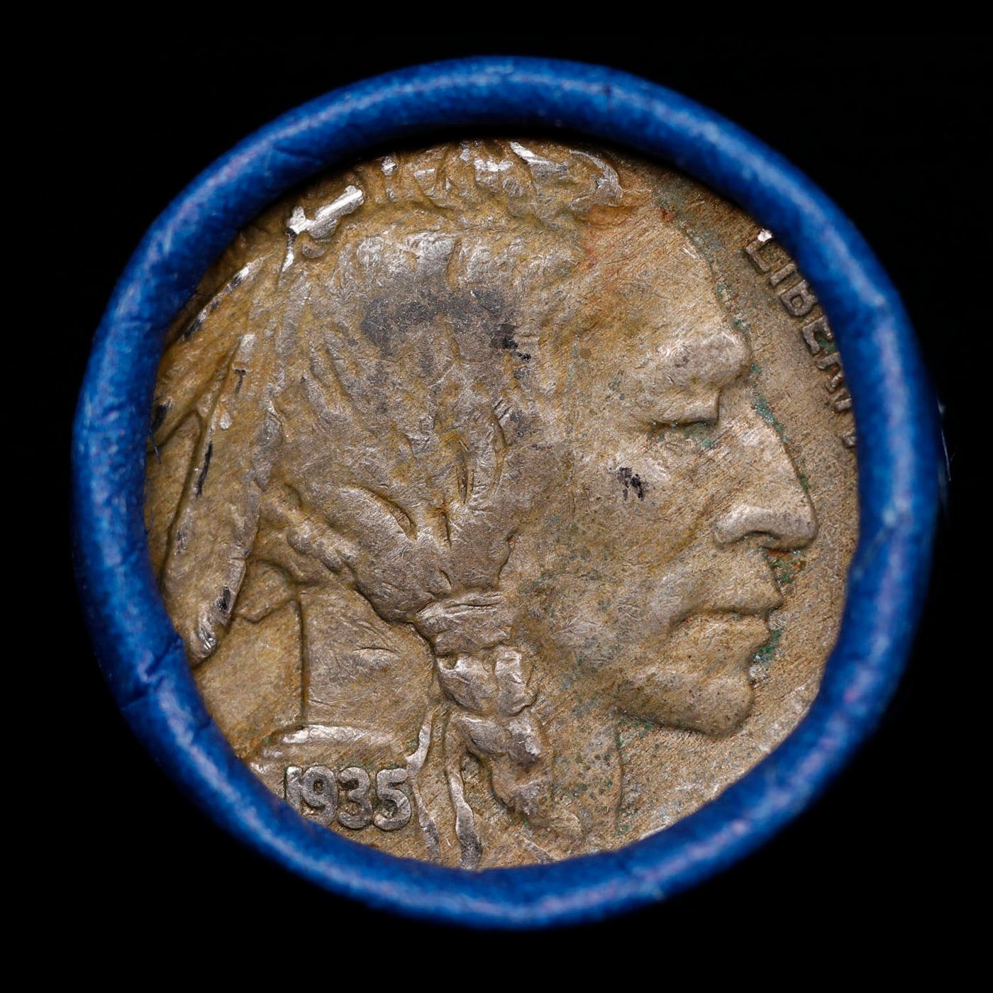 Buffalo Nickel Shotgun Roll in Old Bank Style 'Nathan's' Wrapper 1935 & D Mint Ends. The roll is held in an old, rare "Brandt Abbott Coin Counter" Bank style wrapper. They are all from one estate, the ends on these rolls are very tight. We will guarantee they are all full dates.